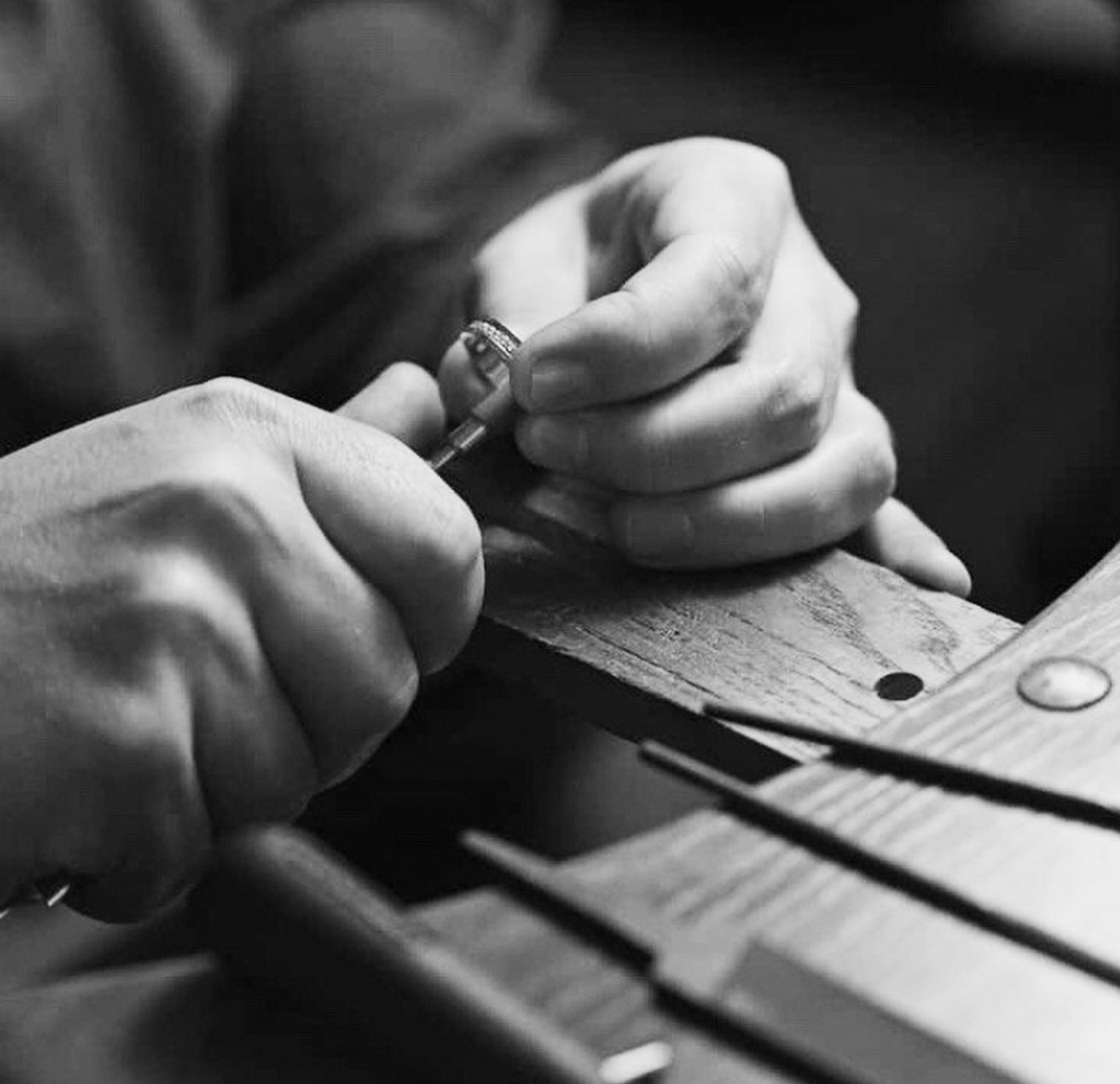 Questa attività ha portato a nuove metodologie di produzione e al raggiungimento di una comprovata esperienza nella produzione di gioielli d’elevata creatività e qualità consentendoci di esprimerci al meglio non solo nei più nobili materiali ma anche in metalli alternativi come il titanio, il titanio nero, l’alluminio e la nano ceramica.